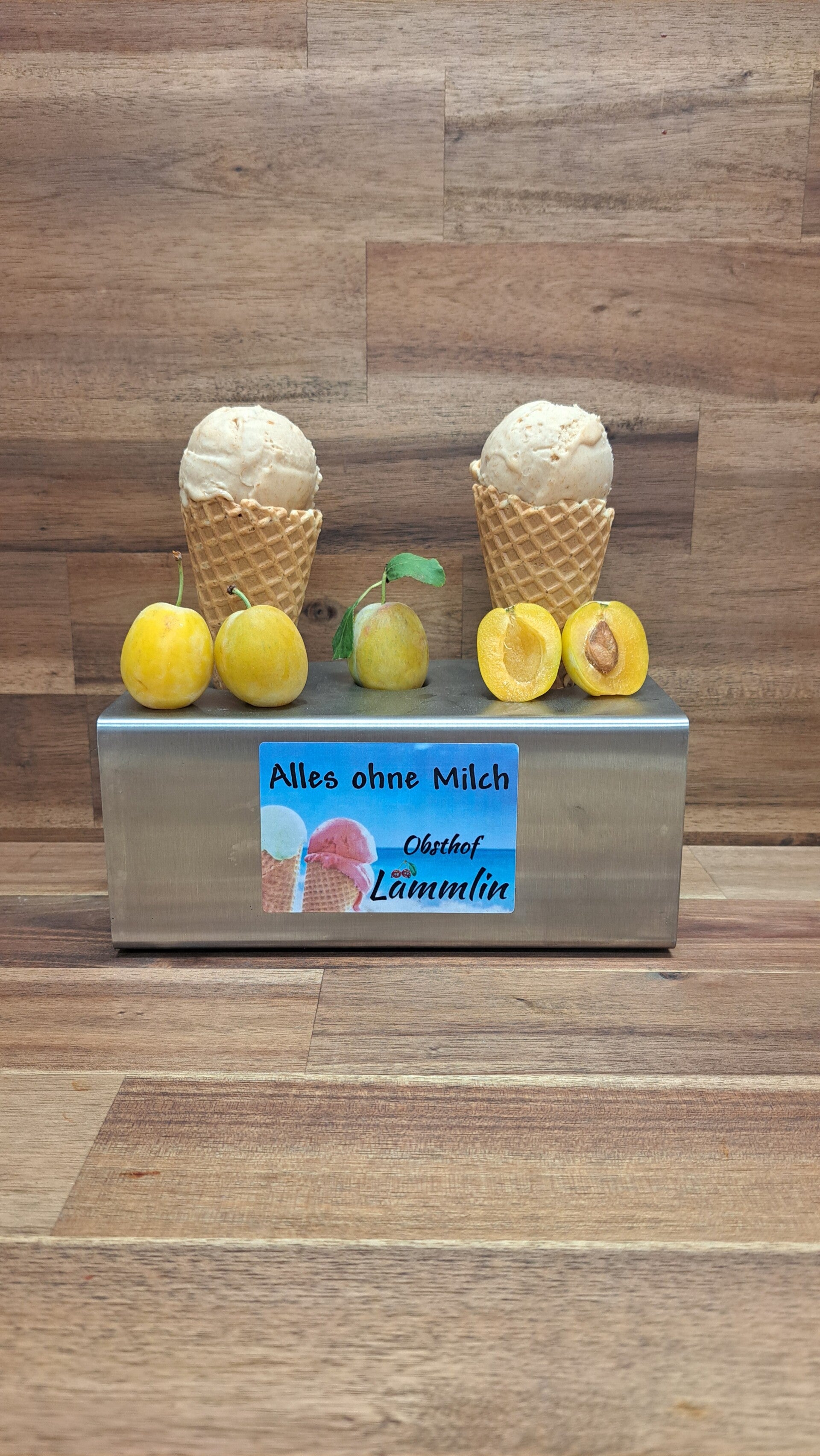Über die heißen Sommertage ist natürlich auch immer eine entsprechende Auswahl an Portionsbecher(entspricht 2Kugeln) oder 1Liter-dosen direkt bei uns auf dem Hof zu haben